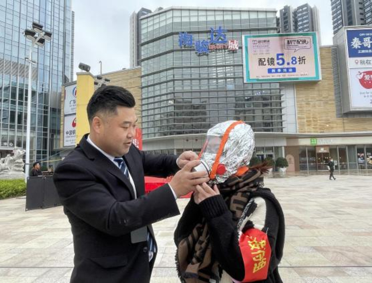 通過(guò)講解火災(zāi)給人生造成最大的危害是煙氣,教育大家火災(zāi)逃生注意事項(xiàng)以及防煙面罩等消防器材的正確使用方法。