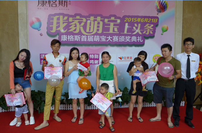 6月21日萌寶大賽頒獎典禮在康格斯銷售中心隆重舉行。21日一大早,銷售中心就已經(jīng)被萌寶寶們的親朋好友團占據(jù),全家出動!萌寶寶們真是每個家庭的小天使??!隨著激動人心的音樂的響起,萌寶大賽的頒獎典禮開始,萌寶寶們和親友團們依次上臺上臺領取了獎狀和由贊助單位提供的精美獎品,參賽的家長們都表示非常感謝康格斯舉辦這個活動,讓他們的寶寶得到更多人的認可,其中一位劉姓的家長說,他一早就考慮在康格斯買房,通過一系列活動更是讓他親身體驗到了康格斯項目的居住氛圍的溫馨和歡樂,使他的信心更加堅定。